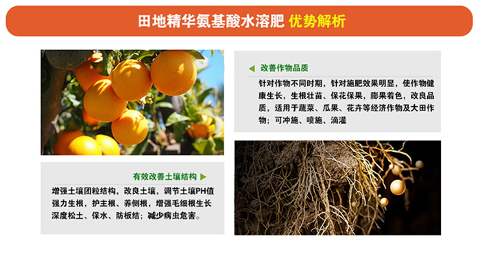 田地精華含氨基酸水溶肥,是氨基酸與鐵、鋅、硼等螯合微量元素融合在一起研磨而成的葉面肥。根據(jù)作物生長(zhǎng)階段所需營(yíng)養(yǎng)設(shè)計(jì)配方,用于葉面噴施,省時(shí)省力。